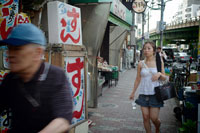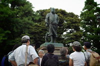 鴬谷の駅前で待ち合わせておもい思いのカメラを持ったら凌雲橋と名前のついた跨線橋を根岸に向かっておりていく。下谷、入谷とまわってもとへ戻るように線路ぞいに。谷中の墓地を抜けたら根津から上野の西郷さんの銅像の前まで。そのあとは午後の1時から数時間かなりの距離を歩いて疲れた足を休めて乾いた咽をビールでうるおす。